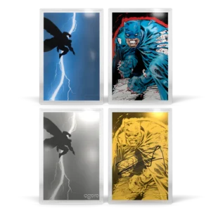 Die BATMAN: The Dark Knight Returns Blind Box bringt die düstere Welt von Batman direkt in deine Sammlung. Jede Box enthält eine Überraschungs-Foilkarte aus 999 Silber bis 9999 Gold (5g) – mit der Chance auf einen signierten Gold-Chase von Frank Miller. Ein hochwertiges Sammlerstück im Blind-Box-Format.