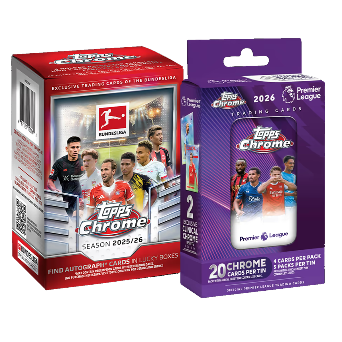 Bundle – Topps Chrome Bundesliga 2025/26 Value + Topps Chrome Premier League Soccer 2025/26 Tin