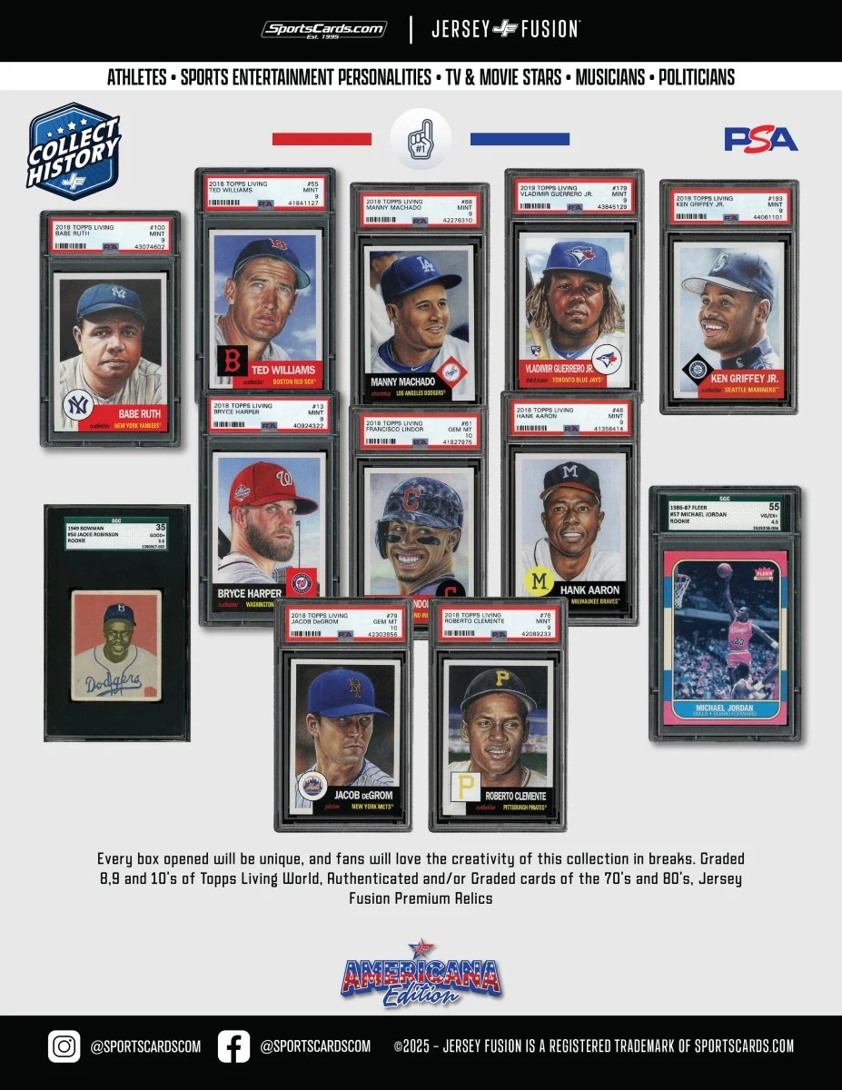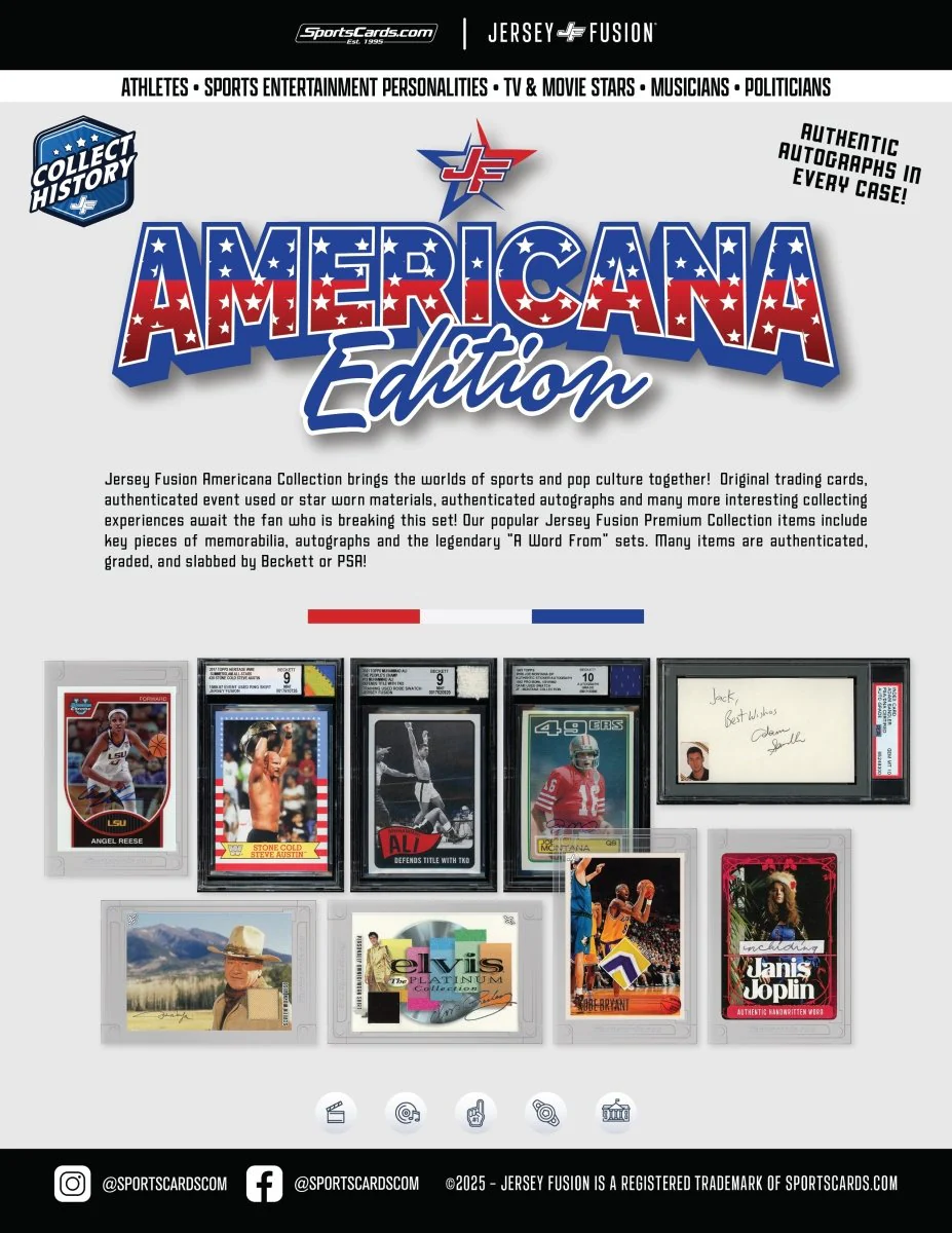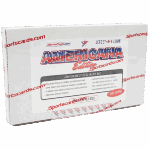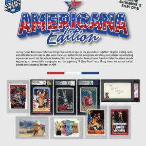 Mit der Jersey Fusion Americana Edition Box bekommst du ein Stück amerikanischer Sport- und Popkultur direkt in deine Sammlung. Jede Box enthält ein einzeln verpacktes Highlight, das von echten Game-Worn-Relics bis hin zu handsignierten Sammlerstücken reicht.