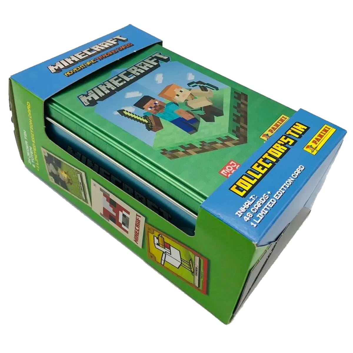 Die Classic Tin Box ist eines der Highlights der Minecraft Adventure Trading Cards Kollektion. In der hochwertigen Metallbox im coolen Minecraft-Design erhältst du insgesamt 49 Cards, bestehend aus 48 Sammelkarten sowie 1 von 6 exklusiven Limited Edition Cards.
