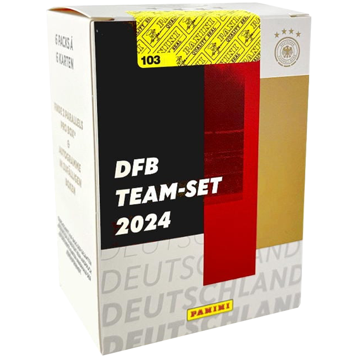 Im DFB-Team Set 2024 erwarten dich Cards von den aktuellen Nationalspielern im neuen 2024er Trikot und einige der größten Legenden des deutschen Fußballs. Dazu findest du in jeder Box zwei seltene, nummerierte Paralles Cards des DFB-Teams und hast in zufälligen Boxen die Chance auf eine Autograph Card.
