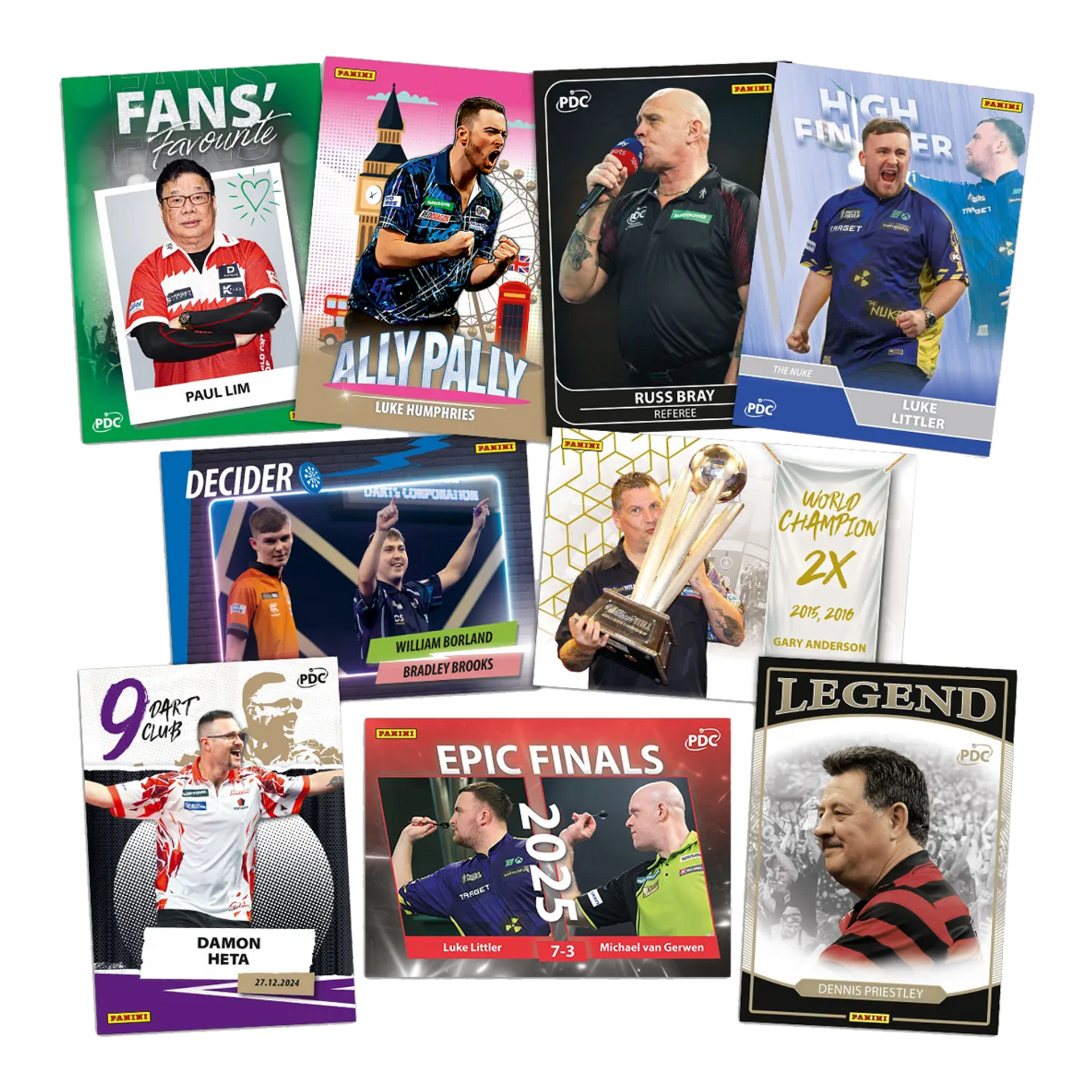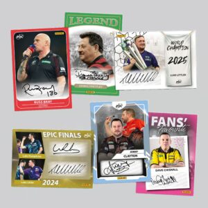 Die Panini PDC World Championship Darts 2026 Collectors Edition ist das offizielle Sammelprodukt zur prestigeträchtigsten Darts-Weltmeisterschaft der Welt. Sie bietet eine hochwertige Auswahl an Karten mit den größten Stars der PDC, exklusiven Collectors-Inhalten und starkem Fokus auf Design, Seltenheit und Sammlerwert.