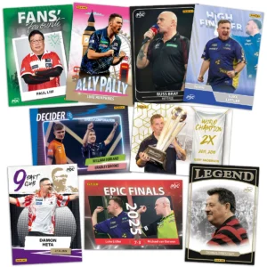 Die Kollektion bietet einen umfassenden Überblick über alle Teilnehmer der Saison 2025 und kombiniert aktuelle Topspieler mit einer detaillierten Rückschau auf die Geschichte der PDC World Championship sowie der Premier League Darts. Neben den Stars der Gegenwart finden sich auch zahlreiche Legenden des Sports, die diese Ära geprägt haben.