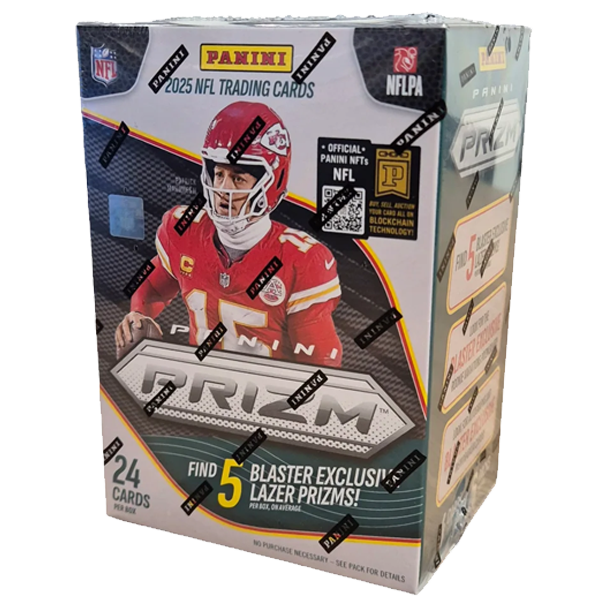 Jede Blaster Box enthält 6 Packs mit jeweils 4 Karten, also insgesamt 24 Karten pro Box, und bietet eine spannende Mischung aus Base Cards, Parallels und Inserts. Im Durchschnitt kannst du dich auf 3 Base Lazer Prizms und 2 Rookie Lazer Prizms freuen, die mit ihrem auffälligen Design zu den Highlights dieses Formats zählen.