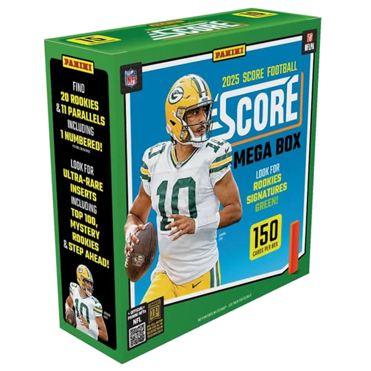 Die Panini Score Football 2025 Mega Box eröffnet die neue Saison der National Football League mit einem umfangreichen Sammelkarten-Set. Jede Box enthält 10 Packs mit je 15 Karten (150 Karten gesamt) sowie im Durchschnitt 20 Rookies, 11 Parallels und 1 exklusive nummerierte Parallelkarte. Ein perfektes Produkt für Sammler und Breaks.