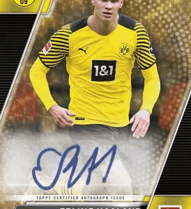 Die legendäre Bundesliga Topps Chrome Kollektion ist zurück. Sichere dir alle Stars der Bundesliga, und finde mit etwas Glück die Autogramme von Topspielern wie Bellingham, Haaland oder Lewandowski. Kannst du die Parallels der BVB-Talente Moukoko und Reyna finden? Bist du einer der Sammler, der mit viel Glück eine signierte Chrome-Autogrammkarte von Alphonso Davies oder Erling Haaland findet? Bundesliga Topps Chrome wird noch einmal die besten Nachwuchsspieler der Bundesliga als Special Insert mit dem Namen „Heroes of Tomorrow“ hervorheben. Die größten Talente der Bundesliga wie Musiala, Burkardt, Vranckx und Koné sind alle mit dabei…