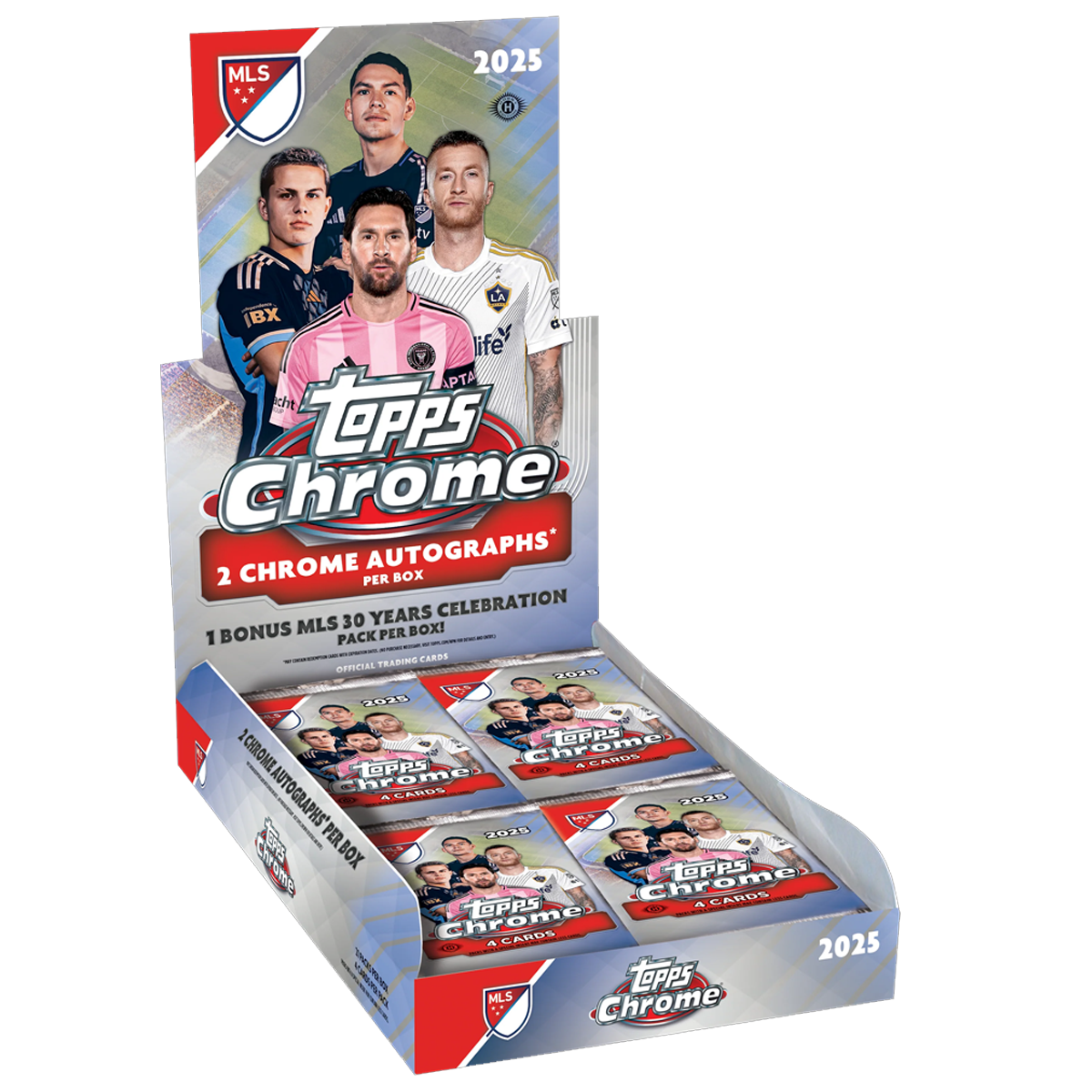Topps Chrome® Major League Soccer 2025 kehrt mit einem beeindruckenden Release zurück und präsentiert die größten Stars, spannendsten Talente und legendärsten Spieler der MLS in einem hochwertigen Chrome®-Finish. Dieses Premium-Produkt verbindet modernes Design, starke Autogramm-Inhalte und begehrte Inserts zu einem echten Highlight für Fußball- und Trading-Card-Sammler.