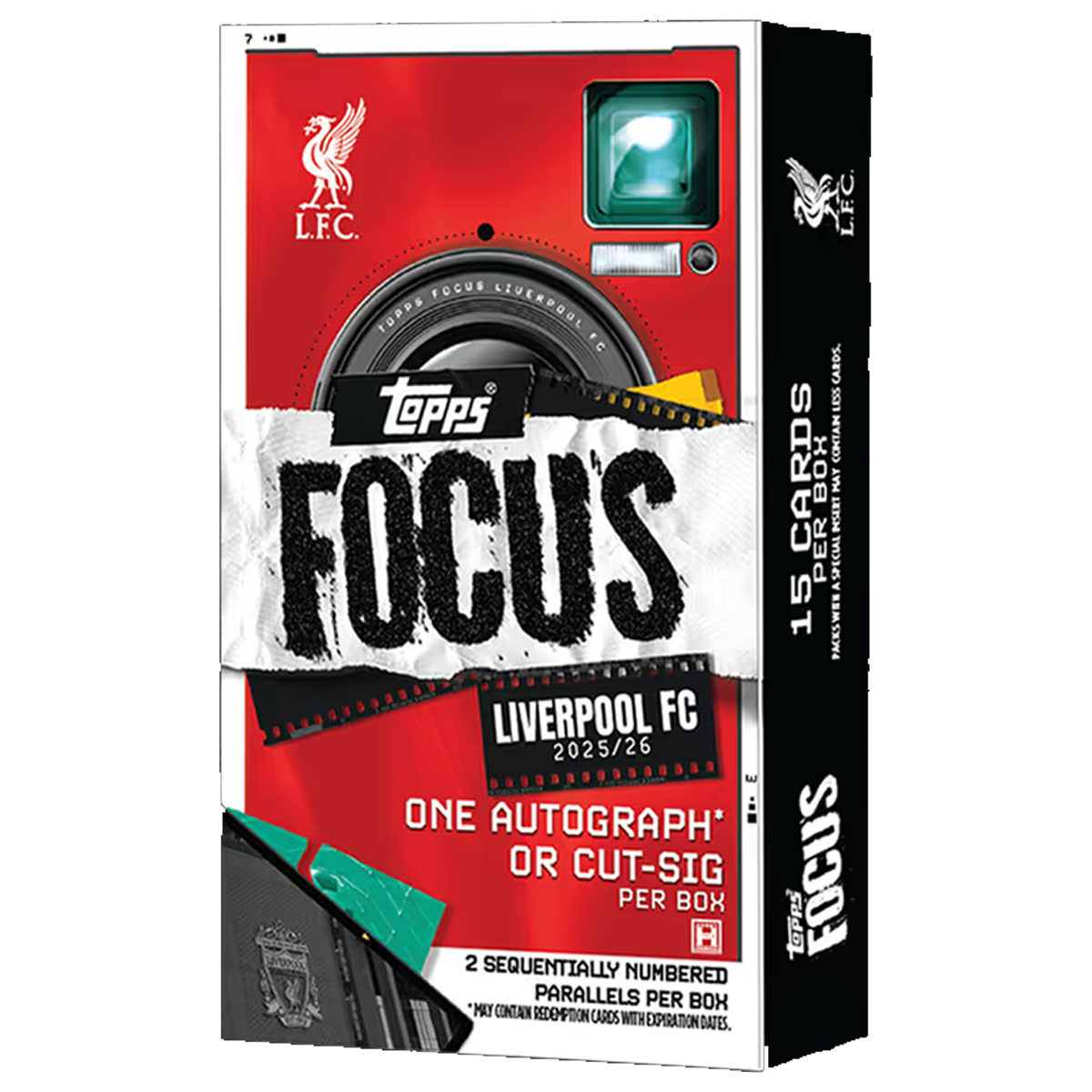 Die Topps Focus Liverpool FC 2025/26 Box ist ein kompaktes Premium-Produkt für Fans von Liverpool FC. Jede Box enthält 1 Pack mit 15 Karten und garantiert 1 Autogramm- oder Relic-Karte sowie 2 nummerierte Parallelkarten. Mit exklusiven Designs und seltenen Autogrammen – inklusive 1/1 Karten – ist dieses Set ein echtes Highlight für Liverpool-Sammler.