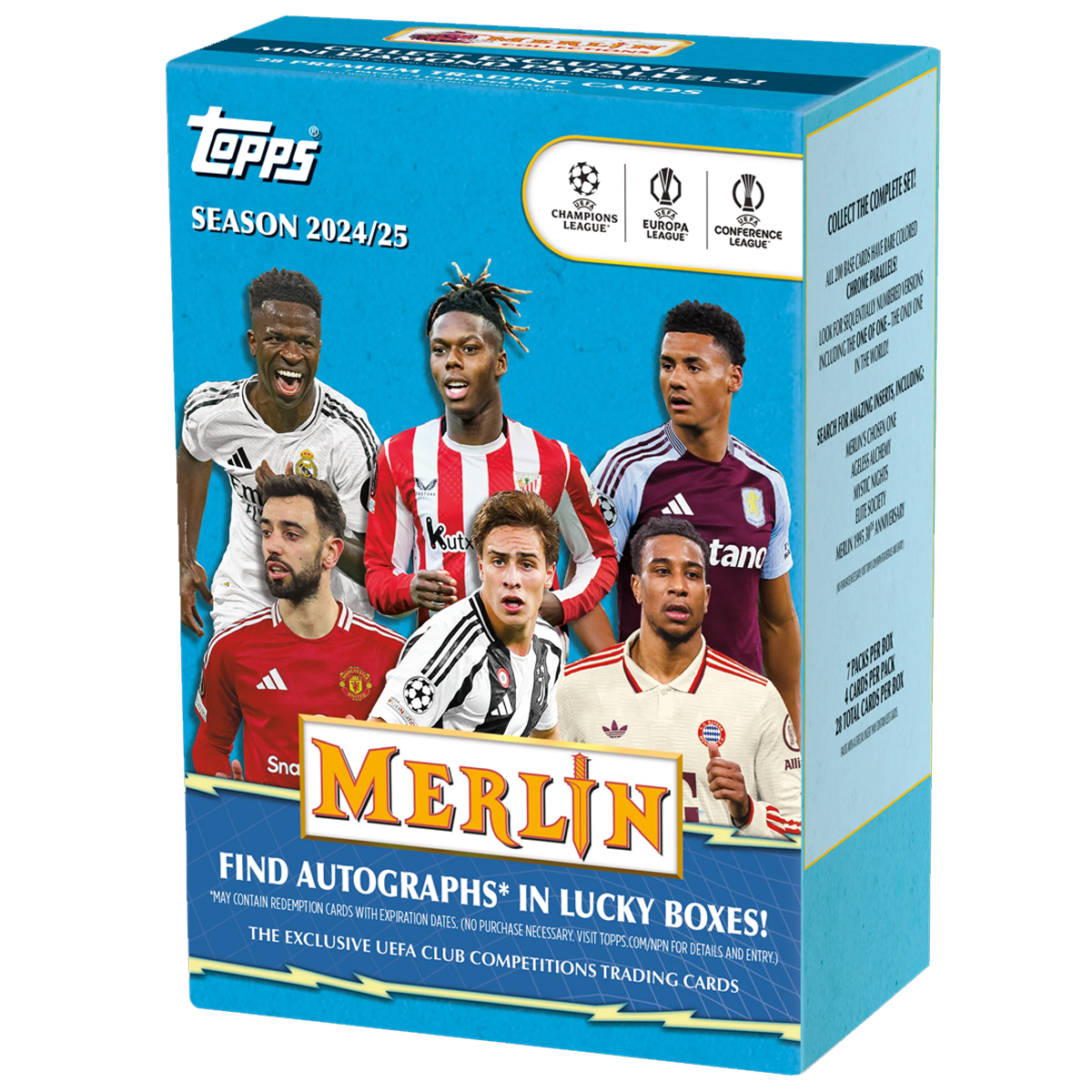 Abracadabra und Alakazam – Topps Merlin UEFA Club Competitions 2024/25 ist zurück und vereint mystisches Design mit den größten Stars der europäischen Klubwettbewerbe. Dieses Release bietet eine starke Mischung aus Top-Rookies, etablierten Stars und legendären Helden, die in der UEFA Champions League, UEFA Europa League oder UEFA Conference League Geschichte geschrieben haben.