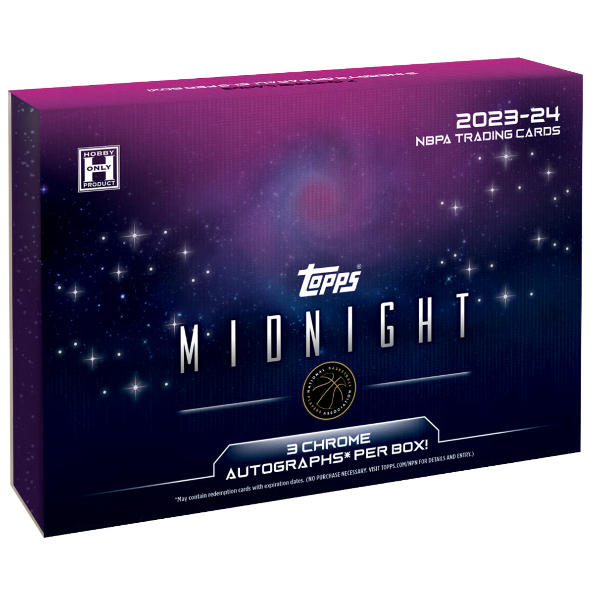Die 2024 Topps Midnight Basketball Hobby Box bringt ein spektakuläres 100-Karten-Basisset, starke Autogramme von Rookies, Stars und Legenden sowie exklusive Inserts wie Lunar Tide, Constellations und die ultrararen SSPs Dream Chasers & After Hours.